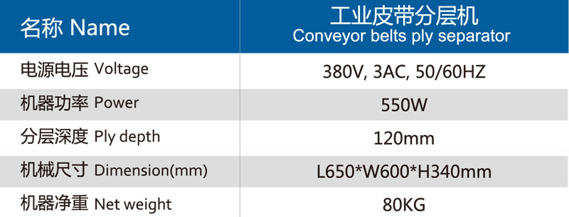 ※ 皮带开齿配套使用,用于分离多层热塑性传送带